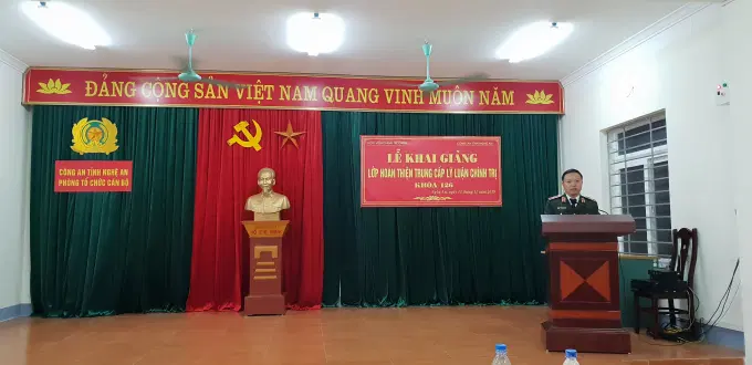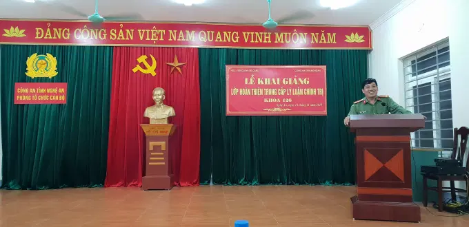 Phát biểu tại buổi lễ, đồng chí Đại tá Lê Khắc Thuyết, Phó Giám đốc Công an tỉnh Nghệ An đã cảm ơn sự quan tâm, tạo điều kiện và phối hợp của Học viện Chính trị CAND đối với công tác đào tạo, bồi dưỡng, nâng cao trình độ nhận thức chính trị cho cán bộ, chiến sỹ của đơn vị, đồng thời đồng chí yêu cầu các học viên cần tự giác học tập, nghiêm túc chấp hành, nội quy, quy chế học tập của lớp học. Lớp học diễn ra trong thời gian hơn 02 tháng.