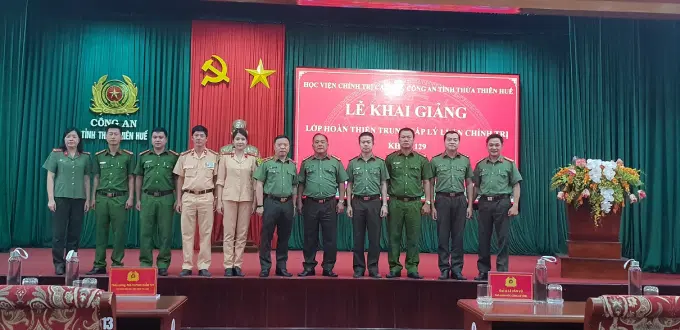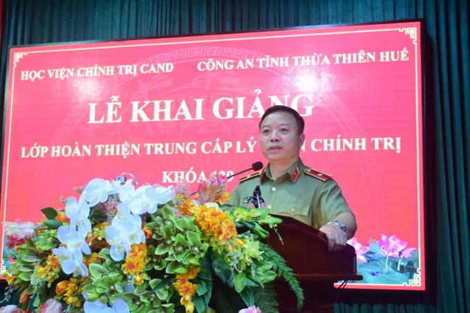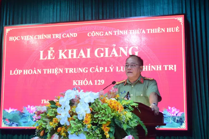 Phát biểu tại buổi lễ, đồng chí Đại tá Lê Văn Vũ, Phó Giám đốc Công an tỉnh Thừa Thiên Huế đã cảm ơn sự quan tâm, tạo điều kiện của Học viện Chính trị CAND đối với công tác đào tạo, bồi dưỡng, nâng cao trình độ nhận thức chính trị cho cán bộ, chiến sỹ của đơn vị, đồng thời chúc mừng 100 học viên tham gia lớp học. Đồng chí yêu cầu các học viên nghiêm túc chấp hành nội quy, quy chế học tập, chấp hành đúng quy định của ngành và lớp học.