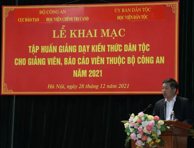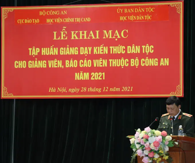Ngày 28/12/2021, tại Học viện Chính trị Công an nhân dân, Cục Đào tạo đã phối hợp với Học viện Dân tộc tổ chức Lễ Khai giảng Lớp Tập huấn giảng dạy kiến thức dân tộc cho giảng viên, báo cáo viên thuộc Bộ Công an năm 2021.
