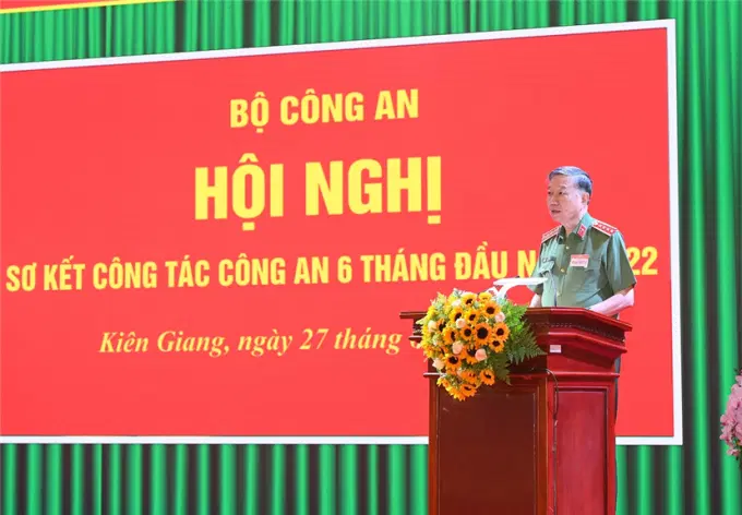 Ngày 27/6/2022, tại Kiên Giang, Đảng ủy Công an Trung ương, Bộ Công an tổ chức Hội nghị sơ kết công tác công an 6 tháng đầu năm 2022, nhằm đánh giá toàn diện tình hình, kết quả các mặt công tác từ đầu năm đến nay; dự báo diễn biến tình hình, xác định chủ trương, nhiệm vụ công tác cho phù hợp với đòi hỏi của tình hình, thực hiện thắng lợi các mục tiêu, yêu cầu nhiệm vụ công tác bảo vệ an ninh quốc gia, đảm bảo trật tự an toàn xã hội và xây dựng lực lượng Công an nhân dân (CAND) năm 2022. Đồng thời triển khai quán triệt Nghị quyết số 12-NQ/TW của Bộ Chính trị về “Đẩy mạnh xây dựng lực lượng CAND thật sự trong sạch, vững mạnh, chính quy, tinh nhuệ, hiện đại, đáp ứng yêu cầu, nhiệm vụ trong tình hình mới” và triển khai Kế hoạch số 118-KH/ĐUCA ngày 25/5/2022 của Đảng ủy Công an Trung ương thực hiện Nghị quyết số 12 của Bộ Chính trị.
