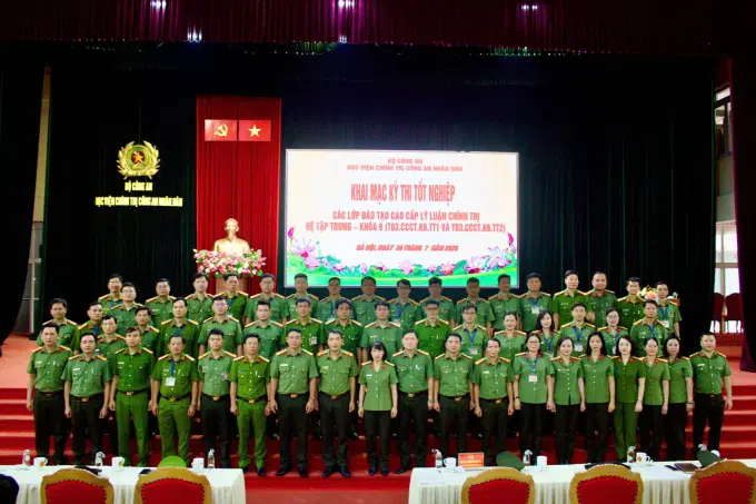 Thực hiện kế hoạch của Học viện Chính trị CAND về việc tổ chức thi tốt nghiệp cho học viên các lớp đào tạo cao cấp lý luận chính trị, hệ tập trung, Khóa 6 (Lớp T03.CCCT.K6.TT và Lớp T03.CCCT.K6.TT2), sáng ngày 30/7/2025, Học viện tổ chức Khai mạc kỳ thi tốt nghiệp cho học viên 02 lớp. Đồng chí TS, Đại tá Nguyễn Văn Tuấn, Ủy viên Ban Thường vụ Đảng ủy, Phó Giám đốc Học viện, Phó Chủ tịch Hội đồng thi chủ trì khai mạc kỳ thi; tham dự còn có các đồng chí ủy viên Hội đồng thi, Ban Coi thi, BanThư ký và toàn thể học viên lớp học đủ điều kiện dự thi tốt nghiệp.