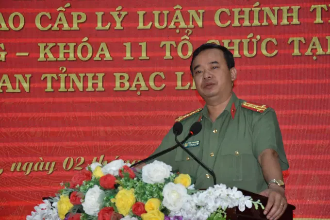 Phát biểu tại buổi lễ, đồng chí Đại tá Trần Phong, Phó Giám đốc Công an tỉnh Bạc Liêu, Phó Chủ tịch Hội đồng thi, thay mặt Đảng ủy, Ban Giám đốc Công an tỉnh phát biểu cảm ơn sự quan tâm, phối hợp của Đảng ủy, Ban Giám đốc Học viện và các đơn vị chức năng thuộc Học viện Chính trị Công an nhân dân đối với công tác giáo dục, đào tạo của địa phương. Đồng thời thể hiện quyết tâm của lãnh đạo, cán bộ Công an tỉnh Bạc Liêu đối với việc tập trung đầu tư cho công tác đào tạo, bồi dưỡng đội ngũ cán bộ, lãnh đạo chỉ huy các cấp, đặc biệt là bồi dưỡng về lý luận chính trị chính trị, tư tưởng cho cán bộ, Đảng viên các cấp của Công an tỉnh.