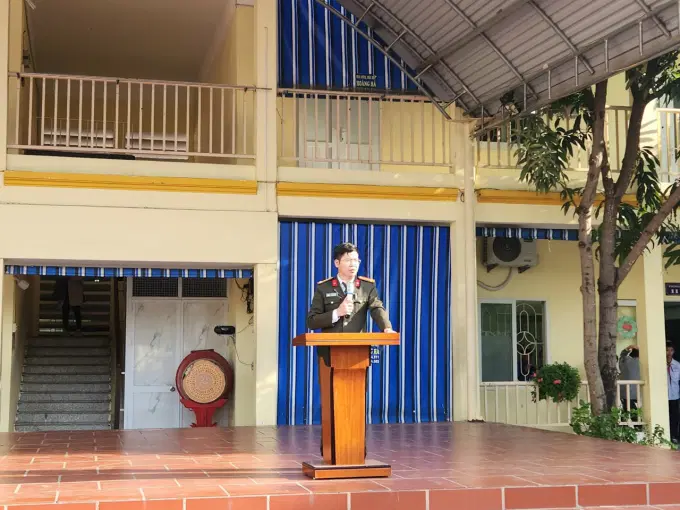 Đồng chí Trung tá, TS Ngô Văn Vịnh, Phó Trưởng Khoa Luật quán triệt các nội dung về phòng, chống bạo lực học đường