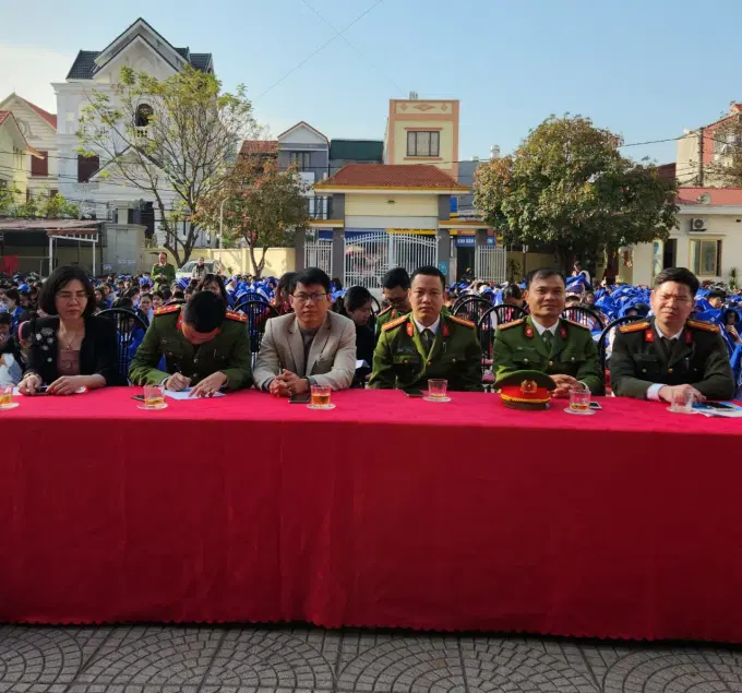Tham dự buổi tuyên truyền có đồng chí Trung tá, TS. Ngô Văn Vịnh, Phó Trưởng Khoa Luật, Học viện Chính trị CAND; Thiếu tá Phạm Văn Thời, Đội trưởng Đội Điều tra tổng hợp, Công an quận Hải An, Thành phố Hải Phòng; Đại diện Ban Chỉ huy Công an phường Đằng Hải, quận Hải An; Ban Giám hiệu Trường THCS Đằng Hải, quận Hải An, Thành phố Hải Phòng.