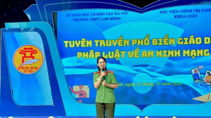 Ngày 25/10/2023, tại Trường THPT Lam Hồng, Khoa Luật, Học viện Chính trị Công an nhân dân phối hợp với nhà trường tuyên truyền Pháp luật về An ninh mạng cho 1.400 em học sinh. Tại buổi tuyên truyền, đồng chí Đại úy, ThS Nguyễn Thị Hạnh Quyên, giảng viên Khoa Luật thông qua các trò chơi và ví dụ minh họa thực tế sinh động đã truyền tải đến các em những tác động tích cực và mặt trái của không gian gian mạng; những nguy cơ, thách thức tác động đến an ninh quốc gia và trật tự an toàn trên không gian mạng; các quy định của pháp luật Việt Nam và các chế tài xử lý vi phạm pháp luật trên không gian mạng; cung cấp cho các em các kỹ năng sử dụng mạng xã hội an toàn, phòng tránh vi phạm pháp luật trên lĩnh vực an ninh mạng.