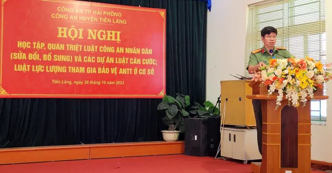 Ngày 26/10/2023, Hội nghị học tập quán triệt Luật Công an nhân dân (sửa đổi, bổ sung) và tuyên truyền dự án Luật Căn cước và Luật Lực lượng tham gia bảo vệ an ninh, trật tự ở cơ sở được diễn ra tại trụ sở Công an huyện Tiên Lãng, Hải Phòng. Tham dự Hội nghị, về