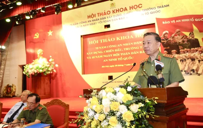 Phát biểu khai mạc hội thảo, Bộ trưởng Tô Lâm nêu rõ, nhìn lại 75 năm lịch sử, ngày 19-8-1945, với dự báo thiên tài và dưới sự lãnh đạo đúng đắn, tài tình của Đảng và Chủ tịch Hồ Chí Minh kính yêu, cuộc Tổng khởi nghĩa Tháng 8 đã giành được thắng lợi trên phạm vi cả nước, đập tan ách thống trị của chế độ thực dân, phong kiến, giành chính quyền về tay Nhân dân. Cùng với việc thiết lập chính quyền cách mạng trong cả nước, các tổ chức đầu tiên của CAND Việt Nam đã ra đời với sứ mệnh lịch sử là đấu tranh trấn áp phản cách mạng, bảo vệ chính quyền cách mạng non trẻ, duy trì trật tự, trị an xã hội và bảo vệ tính mạng, tài sản của Nhân dân.