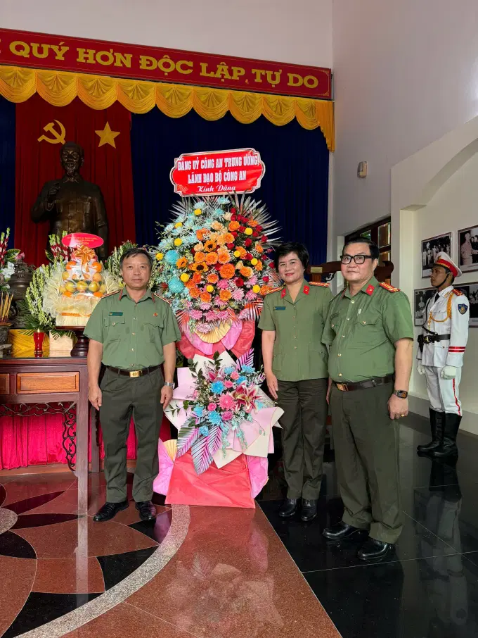 Đồng chí Trung tướng, PGS.TS, NGƯT Phan Xuân Tuy, Giám đốc Học viện Chính trị CAND dâng hương tưởng nhớ Chủ tịch Hồ Chí Minh tại Nhà tưởng niệm Chủ tịch Hồ Chí Minh và chụp ảnh lưu niệm tại Khu di tích Quốc gia Hòn Đá Bạc
