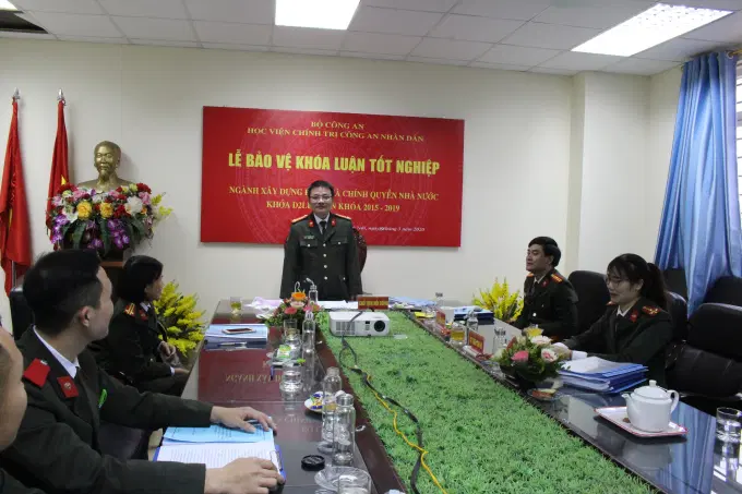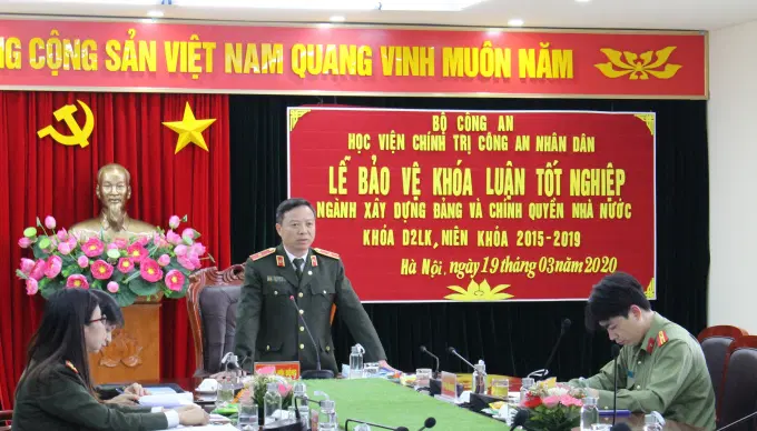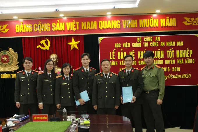 Ngày 19/3/2020, Học viện Chính trị Công an nhân dân tổ chức Lễ bảo vệ khóa luận tốt nghiệp cho học viên khóa D2LK, ngành Xây dựng Đảng và Chính quyền nhà nước, niên khóa 2015 - 2019. Đồng chí Thiếu tướng, PGS.TS Phan Xuân Tuy, Phó Giám đốc Học viện, đồng chí Đại tá, PGS.TS Đinh Ngọc Hoa, Phó Giám đốc Học viện đồng chí Thượng tá, PGS.TS Lê Trọng Hanh, Trưởng khoa Xây dựng Đảng và Chính quyền nhà nước là chủ tịch 03 hội đồng đánh giá khóa luận; thành viên tham gia Hội đồng là các nhà khoa học, giảng viên của các đơn vị thuộc Học viện.