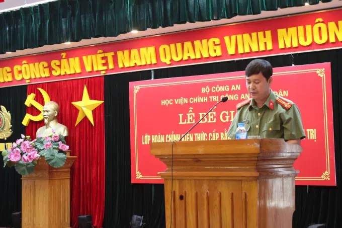 Phát biểu tại Lễ Bế giảng, đồng chí Thiếu tướng Nguyễn Văn Ly, Phó Cục trưởng Cục Đào tạo khẳng định khóa học có ý nghĩa đặc biệt quan trọng đối với công tác giáo dục chính trị, góp phần nâng cao trình độ, chuẩn hóa các chức danh lãnh đạo, chỉ huy cho công an các đơn vị, địa phương, đồng thời đánh giá cao những nỗ lực, hoàn thành tốt nhiệm vụ được giao của các cán bộ, giảng viên của Học viện Chính trị Công an nhân dân, đóng góp quan trọng vào kết quả triển khai thực hiện Kết luận của Ban Bí thư Trung ương và Hướng dẫn của Ban Tổ chức Trung ương về việc giao quyền đào tạo và xác nhận trình độ Cao cấp lý luận chính trị đối với Bộ Công an.