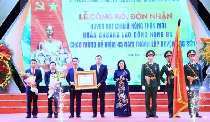 Sáng 15-7, huyện Sóc Sơn trang trọng tổ chức lễ công bố và đón nhận Huân chương Lao động hạng Ba của Chủ tịch nước; Quyết định của Thủ tướng Chính phủ công nhận huyện Sóc Sơn đạt chuẩn nông thôn mới, chào mừng kỷ niệm 45 năm thành lập huyện.
