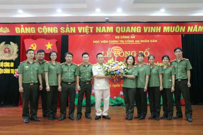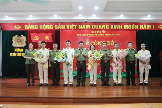 Thừa ủy quyền của Bộ trưởng Bộ Công an, đồng chí Trung tướng Trần Vi Dân, Bí thư Đảng ủy, Giám đốc Học viện Chính trị Công an nhân dân trao Quyết định của Bộ trưởng Bộ Công an và chúc mừng các đồng chí được bổ nhiệm giữ chức vụ Trưởng phòng và tương đương