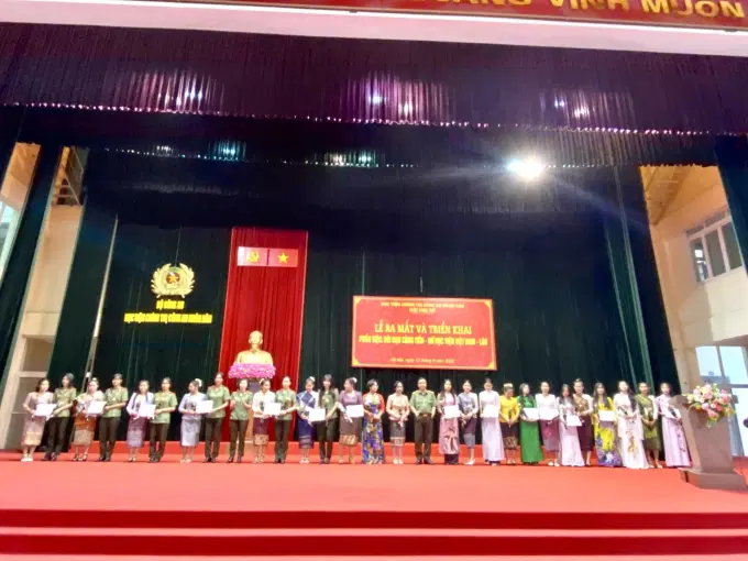 Trong không khí tưng bừng, phấn khởi chào mừng kỷ niệm 77 năm Ngày Cách mạng tháng 8 thành công, 77 năm kỷ niệm thành lập Công an nhân dân Việt Nam (19/8/1945 - 19/8/2022), đặc biệt hướng tới kỷ niệm 60 năm ngày thiết lập quan hệ ngoại giao Việt Nam - Lào (05/9/1962-05/9/2022). Chiều ngày 12/8/2022, tại Hội trường trung tâm, Học viện Chính trị CAND đã tổ chức Lễ ra mắt và triển khai Phần việc “Đôi bạn cùng tiến - nữ học viên Việt Nam – Lào” và phần việc “Chăm sóc vườn hoa Nhà Hiệu bộ”.