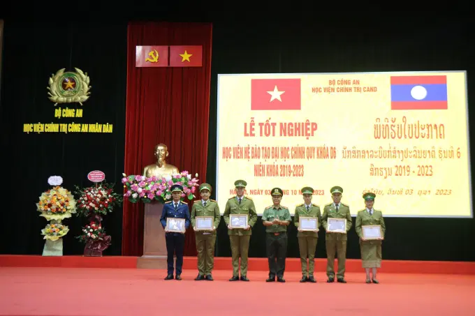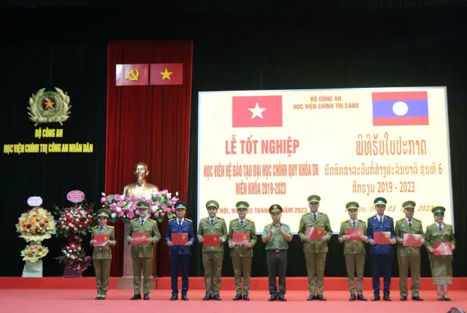 Chiều ngày 03/10/2023, Học viện Chính trị Công an nhân dân tổ chức Lễ tốt nghiệp cho học viên hệ đào tạo đại học chính quy khóa D6, niên khóa 2019 - 2023. Đồng chí Trung tướng, PGS. TS Phan Xuân Tuy, Bí thư Đảng ủy, Giám đốc Học viện chủ trì buổi Lễ. Tham dự buổi Lễ có: đồng chí Tiến sĩ Khămtăn Sổmvông, Tham tán Giáo dục - Văn hóa, Đại sứ quán nước CHDCND Lào tại Việt Nam; đồng chí Đại tá Sắcđaxayya Sổngkham, Phó Trưởng Cơ quan đại diện Bộ Công an nước CHDCND Lào tại Việt Nam; các đồng chí lãnh đạo Đảng ủy, UBND và các gia đình nơi học viên khóa D6 thực tế dân vận tại xã Phú Cường, huyện Sóc Sơn, thành phố Hà Nội; các đồng chí trong Ban Giám đốc Học viện; lãnh đạo các đơn vị thuộc Học viện cùng toàn thể học viên khóa học.