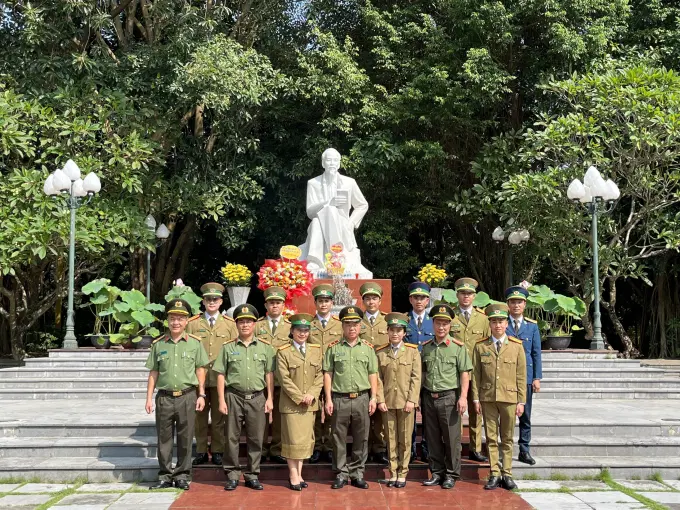 Đồng chí Giám đốc Học viện cùng các đồng chí đại biểu, học viên dâng hương tượng đài Chủ tịch Hồ Chí Minh trong khuôn viên Học viện