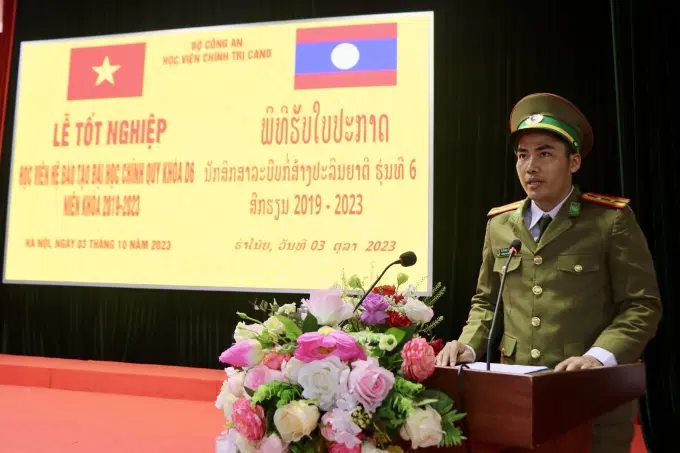 Phát biểu cảm tưởng trong Lễ tốt nghiệp, thay mặt cho toàn thể học viên khóa học, học viên Sítthịphôn Sítthịxay đã gửi lời cảm ơn chân thành, sâu sắc đến Đảng ủy Công an Trung ương, lãnh đạo Bộ Công an, Đảng ủy, Ban Giám đốc Học viện, các thầy, cô giáo, các đơn vị chức năng của Học viện đã quan tâm, tạo mọi điều kiện để các học viên hoàn thành khóa học, tốt nghiệp ra trường và trở về phục vụ đất nước, nhân dân, Đảng và Nhà nước Cộng hòa dân chủ nhân dân Lào. Đồng thời, xin hứa sẽ chủ động, linh hoạt, sáng tạo, vận dụng những tri thức, kỹ năng được trang bị ở Học viện Chính trị CAND Việt Nam vào thực tiễn công tác chiến đấu; khẳng định trình độ và năng lực, tiếp tục rèn luyện, trau dồi, hoàn thiện bản thân; phát huy những kết quả đạt được, thực sự xứng đáng là học viên Học viện để các em khóa sau học tập, noi theo, xứng đáng với sự mong mỏi, kỳ vọng của các thầy, cô giáo; phấn đấu trở thành những sĩ quan xuất sắc, đóng góp tích cực vào sự nghiệp bảo vệ An ninh trật tự nước Cộng hòa dân chủ nhân dân Lào và đóng góp vào sự phát triển, mối quan hệ đặc biệt Việt Nam - Lào, Lào - Việt Nam.