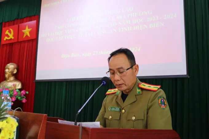 Phát biểu tại buổi làm việc, đồng chí Thiếu tướng, TS Nguyễn Như Lôi, Phó Bí thư Đảng ủy, Phó Giám đốc Học viện gửi lời chúc mừng tới cán bộ, chiến sĩ Công an tỉnh Điện Biên về những thành tích xuất sắc trong quá trình công tác, đặc biệt là trong công tác tham mưu, đảm bảo an ninh trật tự phục vụ tổ chức Lễ kỷ niệm 70 năm chiến thắng Điện Biên Phủ. Đồng chí Phó Giám đốc Học viện đã giới thiệu tổng quát về vị trí, vai trò, chức năng, nhiệm vụ, những thành tích đã đạt được của Học viện trong vòng 10 năm xây dựng và phát triển. Trong đó, năm học 2023-2024, Học viện Chính trị CAND được Bộ Công an giao tổ chức 04 lớp bồi dưỡng tiếng Lào cho cán bộ Công an các đơn vị, địa phương trên cả nước, do các đồng chí giảng viên của Bộ Công an Lào phụ trách giảng dạy. Trải qua một thời gian học tập, Học viện phối hợp với Công an tỉnh Điện Biên tổ chức học tập, trao đổi kinh nghiệm thực tế để tạo cơ hội cho học viên lớp học được lắng nghe, tiếp thu kinh nghiệm từ địa bàn có đường biên giới với nước bạn Lào, đã tổ chức nhiều lớp bồi dưỡng tiếng Lào cho cán bộ, chiến sĩ. Quán triệt mục đích, yêu cầu của buổi làm việc, đồng chí Phó Giám đốc Học viện yêu cầu toàn thể học viên lớp học nêu cao tinh thần, trách nhiệm, tích cực trao đổi để buổi làm việc diễn ra thành công tốt đẹp.