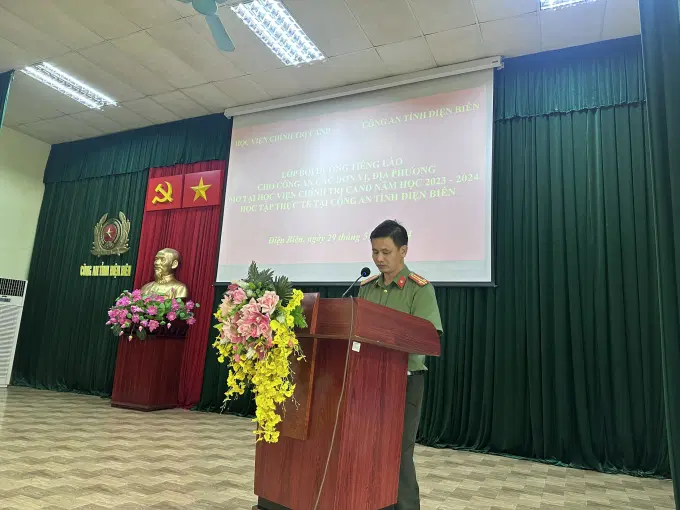 Thực hiện kế hoạch học tập, giảng dạy 02 lớp bồi dưỡng tiếng Lào cho cán bộ công an các đơn vị, địa phương, đợt 2, năm học 2023-2024, chiều ngày 29/5/2024, Học viện Chính trị CAND phối hợp với Công an tỉnh Điện Biên tổ chức buổi học tập, trao đổi kinh nghiệm thực tế cho học viên lớp học. Đồng chí Thiếu tướng, TS Nguyễn Như Lôi, Phó Bí thư Đảng ủy, Phó Giám đốc Học viện chủ trì buổi làm việc. Tham dự buổi làm việc có các đồng chí giảng viên Bộ Công an Lào, đại diện lãnh đạo Phòng Quản lý Đào tạo và bồi dưỡng nâng cao; cán bộ quản lý và toàn thể học viên 02 lớp học.