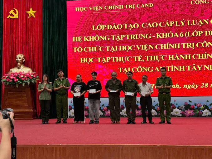 Trong khuôn khổ chương trình học tập thực tế, thực hành chính trị - xã hội đã được phê duyệt, Đoàn công tác Học viện Chính trị CAND đã tổ chức nhiều hoạt động ý nghĩa, thiết thực. Đoàn đã đến thăm, tặng quà tình nghĩa cho 05 gia đình chính sách, gia đình có hoàn cảnh khó khăn trên địa bàn tỉnh Tây Ninh, thể hiện đạo lý “uống nước nhớ nguồn”, “đền ơn đáp nghĩa”, khẳng định bản chất nhân văn, vì nhân dân phục vụ của lực lượng Công an nhân dân. Tiếp đó, đoàn đã đến dâng hương, dâng hoa tại Khu di tích Căn cứ Trung ương Cục miền Nam – nơi từng là cơ quan đầu não của cách mạng miền Nam trong kháng chiến chống Mỹ, thể hiện trí tuệ, bản lĩnh và ý chí quật cường của Đảng ta. Đoàn cũng đến di tích Căn cứ Ban An ninh Trung ương Cục miền Nam, nơi ghi dấu những đóng góp to lớn của lực lượng Công an nhân dân trong công tác bảo vệ Đảng, bảo vệ cách mạng và Nhân dân trong những năm tháng chiến tranh ác liệt. Ngoài ra, đoàn còn tham quan Địa đạo Củ Chi – “vùng đất thép” thể hiện sức sáng tạo và lòng dũng cảm phi thường của quân và dân ta trong kháng chiến chống Mỹ, cũng như Dinh Độc Lập – công trình lịch sử ghi dấu thời khắc thiêng liêng ngày 30/4/1975, khi miền Nam hoàn toàn giải phóng, đất nước thống nhất.