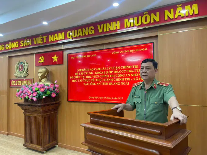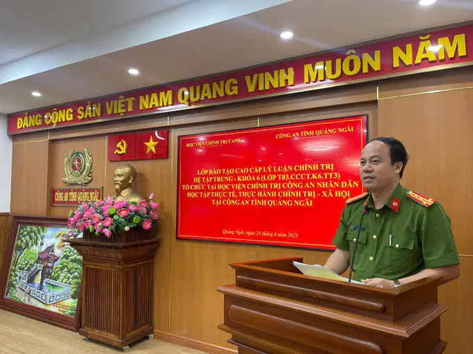 Hưởng ứng đợt sinh hoạt chính trị đặc biệt do Bộ Công an phát động; thi đua lập thành tích chào mừng kỷ niệm 50 năm Ngày giải phóng miền Nam, thống nhất đất nước (30/4/1975 - 30/4/2025), 135 năm Ngày sinh Chủ tịch Hồ Chí Minh (19/5/1890 - 19/5/2015), 11 năm ngày Ngày Học viện Chính trị Công an nhân dân chính thức đi vào hoạt động (25/4/2014 - 25/4/2025), hướng tới tổ chức thành công Đại hội Đảng các cấp. Thực hiện Kế hoạch số 606/KH-T03-P3, ngày 04/4/2025 của Học viện Chính trị CAND về việc tổ chức đi học tập thực tế, thực hành chính trị - xã hội lớp đào tạo trình độ cao cấp LLCT, hệ tập trung - Khóa 6 (Lớp T03.CCCT.K6.TT3), từ ngày 24/4/2025 đến ngày 28/4/2025 Học viện Chính trị CAND tổ chức Đoàn cán bộ, học viên lớp đào tạo cao cấp LLCT, hệ tập trung - Khóa 6 (Lớp T03.CCCT.K6.TT3) đi học tập thực tế, thực hành chính trị - xã hội, trao đổi kinh nghiệm tại địa bàn tỉnh Quảng Ngãi.