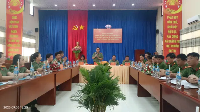 Phát biểu tại buổi làm việc, đồng chí Trung tá Nguyễn Hoàng Vũ, Trưởng Công an xã Khánh An đã bày tỏ vui mừng khi Đoàn công tác đến thăm và làm việc tại Công an xã và giới thiệu khái quát về đăc điểm tình hình của địa bàn xã gắn với kết quả công tác công tác duy trì, bảo đảm an ninh, trật tự của Công an xã đã đạt được trong thời gian qua. Tiếp đó, Đoàn công tác đã được nghe các Công an xã trao đổi các nội dung: Việc triển khai thực hiện Kết luận số 21-KL/TW, ngày 24/01/2025 của Ban Chấp hành Trung ương Đảng khóa XIII về việc tổng kết Nghị quyết 18-NQ/TW năm 2017 của Ban Chấp hành Trung ương khóa XII về một số vấn đề tiếp tục đổi mới, sắp xếp tổ chức bộ máy của hệ thống chính trị tinh gọn, hoạt động hiệu lực, hiệu quả; sắp xếp tổ chức bộ máy Công an địa phương theo hướng “tỉnh toàn diện, xã vững mạnh, bám cơ sở”, không tổ chức Công an cấp huyện; Công tác tham mưu, triển khai Nghị Quyết số 16-NQ/ĐUCA, ngày 18/01/2023 của Đảng ủy Công an Trung ương về tăng cường công tác chính trị, tư tưởng đáp ứng yêu cầu xây dựng lực lượng CAND thật sự trong sạch, vững mạnh, chính quy, tinh nhuệ, hiện đại tới cán bộ, đảng viên trong Công an xã; Công tác giáo dục chính trị, tư tưởng; đạo đức, lối sống cho cán bộ, chiến sĩ Công an xã Khánh An, tỉnh Cà Mau; những thuận lợi, khó khăn, giải pháp thực hiện và kết quả đạt được; đặc biệt là thời điểm kiện toàn tổ chức Công an 03 cấp, sắp xếp tổ chức bộ máy, đơn vị hành chính và vận hành mô hình tổ chức chính quyền địa phương 02 cấp hiện nay; Thực trạng việc thực hiện các thủ tục hành chính trong công tác tiếp dân; thuận lợi, khó khăn, giải pháp đáp ứng yêu cầu hiện nay; Kết quả thực hiện Đề án “Phát triển ứng dụng dữ liệu về dân cư, định danh và xác thực điện tử, phục vụ chuyển đổi số quốc gia giai đoạn 2022 - 2025, tầm nhìn đến năm 2030”; Công tác triển khai thực hiện Luật lực lượng tham gia bảo vệ an ninh, trật tự ở cơ sở; Kinh nghiệm trong khai thác, phát huy những trang bị Bộ cấp tại địa bàn cơ sở.