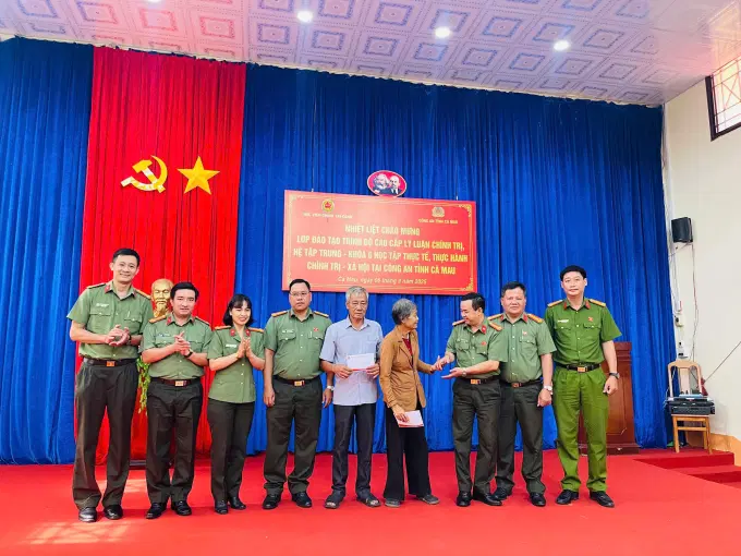 Nhân đợt học tập thực tế, thực hành chính trị - xã hội, Đoàn Công tác của Học viện trao 02 suất quà cho 02 gia đình cán bộ, chiến sĩ của Công an xã Khánh An, tỉnh Cà Mau có hoàn cảnh khó khăn, gia đình có công với cách mạng.