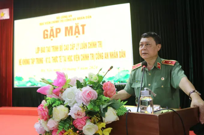 Phó Giám đốc Học viện Chính trị CAND phát biểu tại buổi gặp mặt