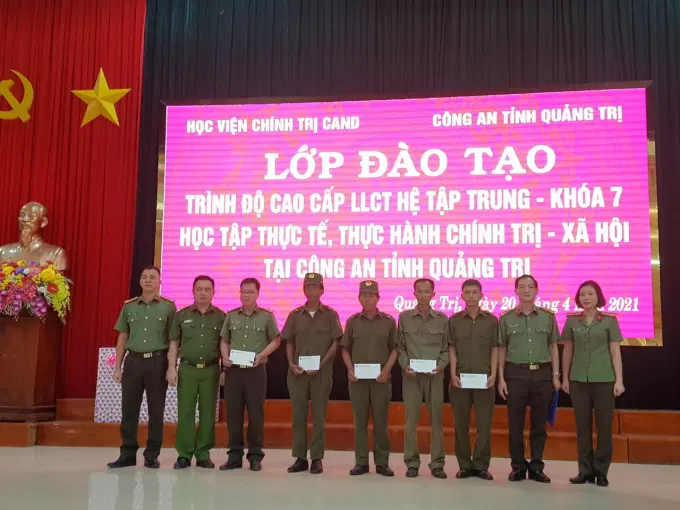 Trong chuỗi sự kiện chào mừng 46 năm ngày giải phóng miền Nam thống nhất đất nước và kỷ niệm 07 năm thành lập Học viện Chính trị CAND; từ ngày 19 đến ngày 23/4/2021 theo Kế hoạch giảng dạy - học tập lớp đào tạo trình độ cao cấp lý luận chính trị hệ tập trung – Khóa 7 đi học tập thực tế, thực hành chính trị - xã hội tại tỉnh Quảng Trị do đồng chí Thiếu tướng, TS Nguyễn Như Lôi, Ủy viên Ban Thường vụ Đảng ủy, Phó Giám đốc Học viện Chính trị Công an nhân dân làm Trưởng Đoàn. Theo Kế hoạch, ngày 20/4, học viên lớp học đã có buổi làm việc với Công an tỉnh Quảng Trị; tham dự buổi làm việc có đồng chí Đại tá Lê Phương Nam, Phó Giám đốc Công an tỉnh Quảng Trị; đại diện lãnh đạo Phòng Quản lý đào tạo và bồi dưỡng nâng cao, Học viện Chính trị Công an nhân dân và đại diện lãnh đạo Công an tỉnh Quảng Trị, cùng toàn thể học viên lớp học.