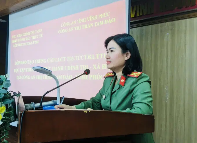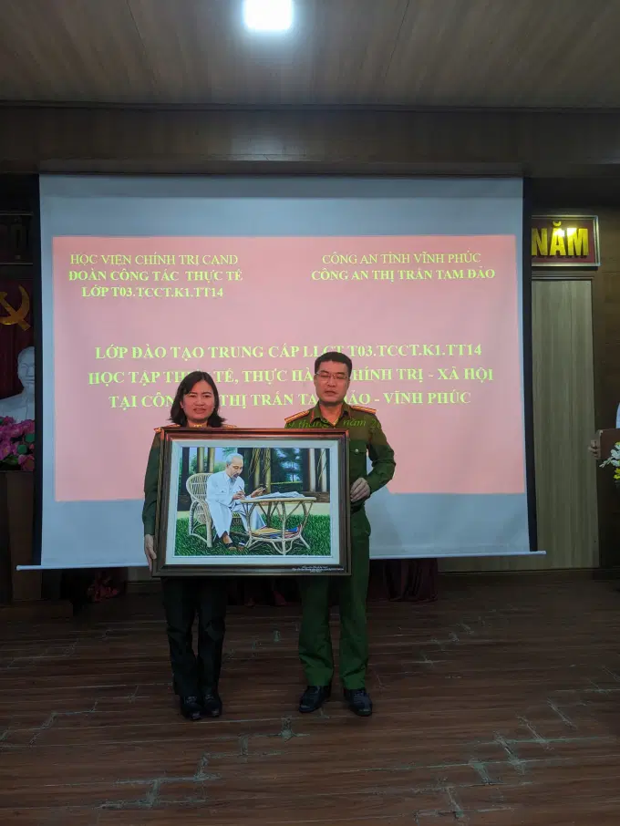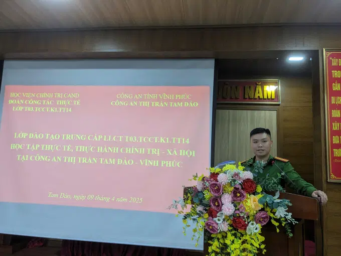 Hướng tới kỷ niệm 80 năm ngày truyền thống của lực lượng CAND, 20 năm Ngày hội toàn dân bảo vệ an ninh Tổ quốc (19/8/1945 - 19/8/2025) và Quốc khánh nước Cộng hòa Xã hội chủ nghĩa Việt Nam (02/9/1945 - 02/9/2025); thực hiện Kế hoạch số 411/KH-T03-P3 ngày 12/3/2025 của Học viện Chính trị CAND về việc Tổ chức học tập thực tế, thực hành chính trị - xã hội Lớp đào tạo trung cấp lý luận chính trị , hệ tập trung - Khóa 1, mở tại Học viện Chính trị CAND (T03.TCCT.K1.TT14), từ ngày 09/4/2025 đến ngày 15/4/2025 Học viện Chính trị CAND tổ chức Đoàn cán bộ, học viên đi học tập thực tế, trao đổi kinh nghiệm, thực hành chính trị xã hội tại địa bàn thị trấn Tam Đảo, tỉnh Vĩnh Phúc và thành phố Hà Nội. Được sự ủy quyền của đồng chí Giám đốc Học viện, đồng chí Thượng tá, TS. Nguyễn Thị Duyên, Phó Trưởng phòng Phòng Quản lý đào tạo và bồi dưỡng nâng cao làm Trưởng Đoàn công tác.