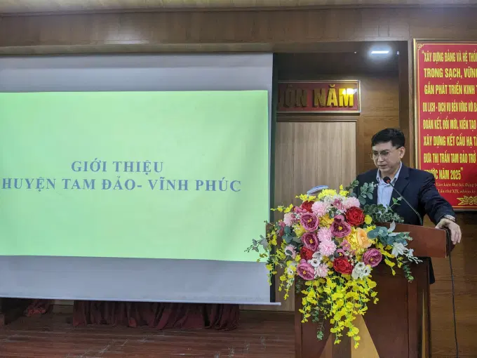 Đồng chí Đặng Hoàng Lâm, Bí thư Đảng ủy Thị trấn Tam Đảo phát biểu tại buổi làm việc
