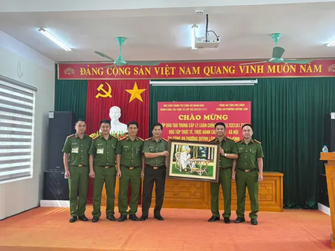 Tại buổi làm việc, đồng chí Trung tá Nguyễn Công Hà, Trưởng Công an phường Quỳnh Lâm đã bày tỏ sự vui mừng, vinh dự khi Công an phường Quỳnh Lâm được Học viện Chính trị CAND tin tưởng, lựa chọn để tổ chức học tập thực tế, thực hành chính trị - xã hội cho học viên lớp đào tạo trung cấp lý luận chính trị, T03.TCCT.K1.TT17. Tiếp đó, Đoàn Công tác đã được nghe đồng chí Trưởng Công an phường Quỳnh Lâm giới thiệu khái quát về đặc điểm chung; tình hình an ninh, trật tự trên địa bàn; thực trạng và giải pháp đáp ứng yêu cầu thực tiễn triển khai Công an 03 cấp hiện nay (từ ngày 01/3/2025); công tác bảo đảm an ninh trật tự phục vụ Đại hội Đảng các cấp tiến tới Đại hội Đảng toàn quốc; kinh nghiệm trong hướng dẫn, phát huy vai trò của lực lượng bảo vệ an ninh, trật tự ở cơ sở; kinh nghiệm trong khai thác, phát huy những trang bị Bộ cấp tại địa bàn cơ sở. Buổi trao đổi kinh nghiệm thực tế diễn ra trong không khí sôi nổi, tích cực từ phía báo cáo viên và học viên. Kết thúc buổi làm việc, Đoàn Công tác của Học viện đã trao tặng quà lưu niệm cho Công an phường Quỳnh Lâm.