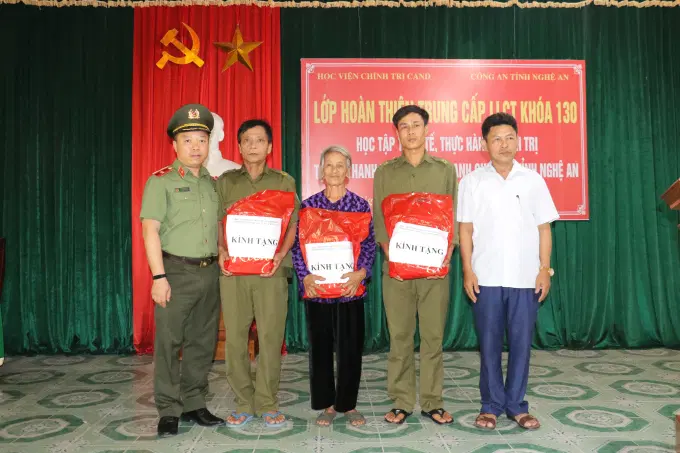 Nhân dịp đợt học tập thực tế, thực hành chính trị - xã hội tại huyện Thanh Chương, Đoàn công tác đã tặng quà cho chính quyền địa phương và 03 gia đình công an viên có hoàn cảnh khó khăn. Đây là hoạt động mang ý nghĩa nhân văn và hỗ trợ cho các gia đình có hoàn cảnh khó khăn; tăng cường hơn nữa quan hệ gắn bó máu thịt giữa Công an nhân dân với nhân dân.