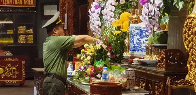 Đoàn công tác đã tổ chức dâng hương tại khu di tích lịch sử Núi Phượng Hoàng, nơi có Đền thờ thầy giáo Chu Văn An, bày tỏ lòng kính trọng, tôn thờ Thầy về tâm đức, đạo làm thầy, người đã đắp nền móng cho nền giáo dục nước ta bằng tâm đức và chính cuộc đời của mình, soi chung tấm gương đạo đức nhà giáo cho cán bộ, giảng viên, học viên Học viện Chính trị CAND quyết tâm đoàn kết, khắc phục mọi khó khăn, nêu cao trách nhiệm gương mẫu của người cán bộ, đảng viên, cống hiến hết mình vì sự nghiệp giáo dục, xây dựng đất nước phồn vinh vì cuộc sống bình yên, hạnh phúc của nhân dân.