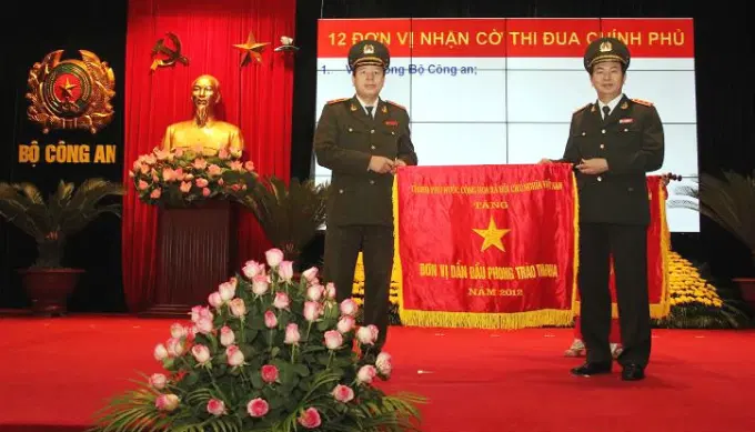 Bộ trưởng Trần Đại Quang trao Cờ thi đua của Chính phủ cho Văn phòng Bộ Công an.