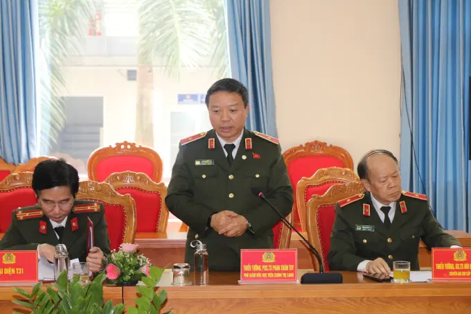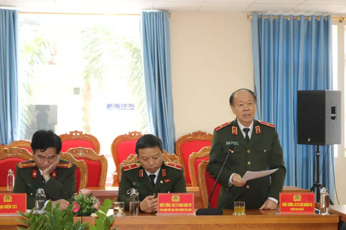 Đồng chí Thiếu tướng, GS.TS Bùi Quảng Bạ, chuyên gia cao cấp, Học viện Chính trị Công an nhân dân phát biểu