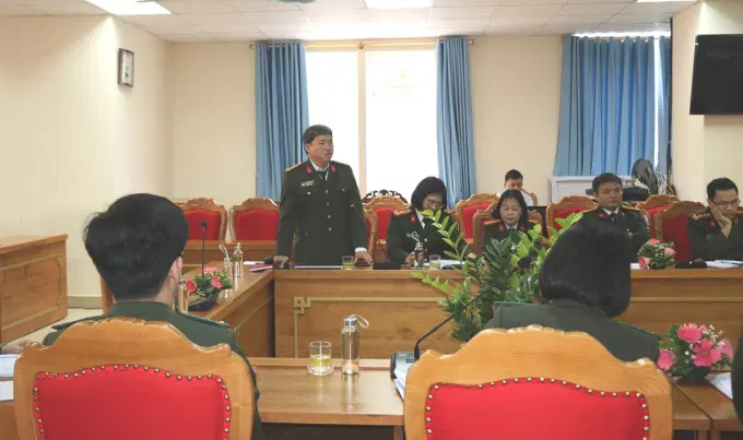 Đồng chí Thượng tá, PGS.TS Vi Thái Lang, Trưởng Khoa Triết học và chủ nghĩa xã hội khoa học, Học viện Chính trị Công an nhân dân phát biểu