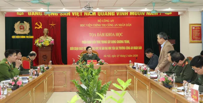 Ngày 27/2/2020, Học viện Chính trị Công an nhân dân tổ chức Tọa đàm khoa học “Phân định kiến thức trong xây dựng chương trình, biên soạn giáo trình bậc đại học và sau đại học của các trường Công an nhân dân”. Đồng chí Trung tướng, PGS.TS Trần Vi Dân, Giám đốc Học viện Chính trị Công an nhân dân chủ trì Tọa đàm. Tham dự có các đồng chí trong Ban Giám đốc Học viện; GS.TS Phan Văn Kha, nguyên Viện trưởng Viện Giáo dục Việt Nam; các tướng lĩnh, nhà khoa học trong Công an nhân dân; đại diện đơn vị chức năng của Cục Khoa học, chiến lược và lịch sử công an, Học viện An ninh nhân dân, Học viện Cảnh sát nhân dân cùng đại diện lãnh đạo, cán bộ, giảng viên các đơn vị thuộc Học viện.