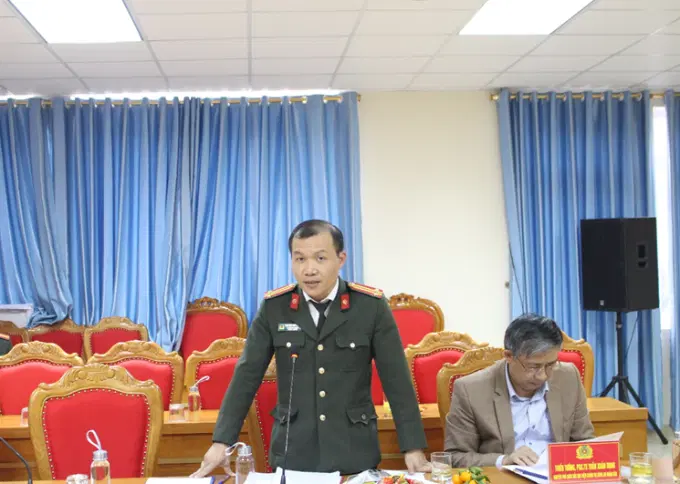 Đồng chí Trung tá, TS Nguyễn Văn Tuấn, Quyền Trưởng Phòng Quản lý nghiên cứu khoa học, Học viện Chính trị CAND phát biểu tại Tọa đàm