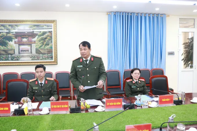 Đồng chí Trung tướng, PGS.TS Trần Vi Dân, Giám đốc Học viện Chính trị Công an nhân dân phát biểu tại buổi nghiệm thu.