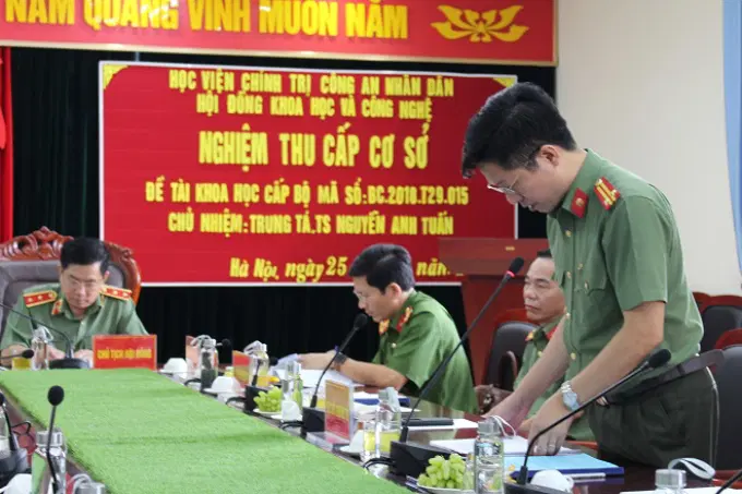 Ngày 25/8/2020, Hội đồng Khoa học và Công nghệ Học viện Chính trị Công an nhân dân đã tổ chức nghiệm thu cấp cơ sở Đề tài khoa học cấp Bộ “Phòng ngừa pháp nhân thương mại phạm tội theo chức năng của lực lượng Cảnh sát nhân dân”, mã số BC.2018.T29.015 do Học viện Chính trị Công an nhân dân chủ trì và đồng chí Trung tá, TS Nguyễn Anh Tuấn, Phó Trưởng Khoa, Khoa Luật, Học viện Chính trị Công an nhân dân làm Chủ nhiệm đề tài. Đồng chí Trung tướng, PGS.TS Trần Vi Dân, Giám đốc Học viện Chính trị Công an nhân dân làm Chủ tịch Hội đồng. Tham gia Hội đồng có các thành viên trong Hội đồng và đại diện lãnh đạo, nhà khoa học, cán bộ, giảng viên các khoa, phòng, bộ môn thuộc Học viện.