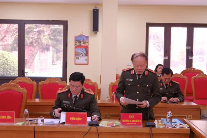 Trung tướng, PGS.TS Phan Xuân Tuy, Giám đốc Học viện Chính trị Công an nhân dân, Chủ tịch Hội đồng phát biểu quán triệt mục đích, yêu cầu và phương pháp làm việc tại buổi nghiệm thu