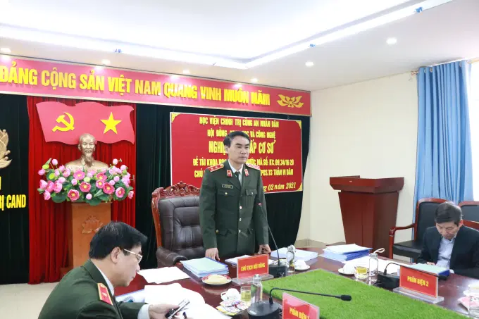 Ngày 05/02/2021, Hội đồng Khoa học và Công nghệ Học viện Chính trị Công an nhân dân đã tổ chức nghiệm thu cấp cơ sở Đề tài khoa học cấp Nhà nước “Cơ sở khoa học và giải pháp bảo đảm an ninh, trật tự trên địa bàn các huyện đảo ven bờ Việt Nam”, mã số KC.09.34/16-20 do Học viện Chính trị Công an nhân dân chủ trì; đồng chí Trung tướng, PGS.TS Trần Vi Dân, Giám đốc Học viện Chính trị Công an nhân dân làm Chủ nhiệm. Đồng chí Trung tướng, PGS.TS Trần Đình Nhã làm Chủ tịch Hội đồng. Tham gia Hội đồng có: Thiếu tướng, PGS.TS Phí Đức Tuấn, Ủy viên phản biện 1; Thiếu tướng, GS.TS Nguyễn Văn Tài, Ủy viên phản biện 2; Thiếu tướng, PGS.TS Đinh Ngọc Hoa, Ủy viên hội đồng; Đại tá Nguyễn Văn Kiển, Ủy viên Hội đồng, Thiếu tướng, TS Bùi Trung Dũng, Ủy viên hội đồng; Đại tá Nguyễn Quốc Long, Ủy viên Hội đồng. Tới dự buổi nghiệm thu có sự hiện diện của GS. TSKH Phạm Hoàng Hải, Chủ nhiệm Chương trình quốc gia KC.09/16-20 và cộng sự; các nhà khoa học, các thành viên Ban chủ nhiệm và đại diện các đơn vị chức năng thuộc Học viện.