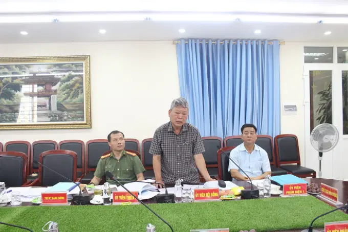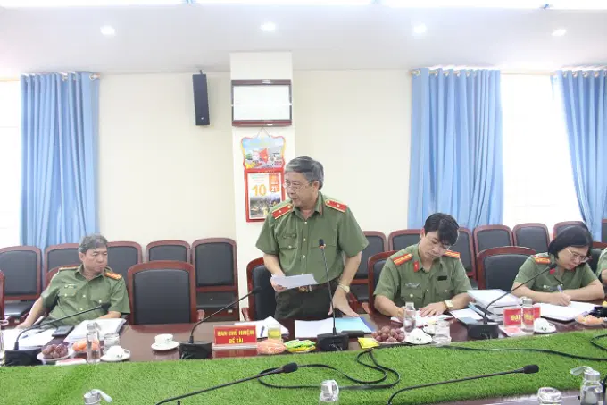 Đồng chí Đại tá, PGS.TS Phạm Đình Trường, Nguyên Trưởng khoa, Học viện An ninh nhân dân, Ủy viên Hội đồng, phát biểu tại buổi nghiệm thu