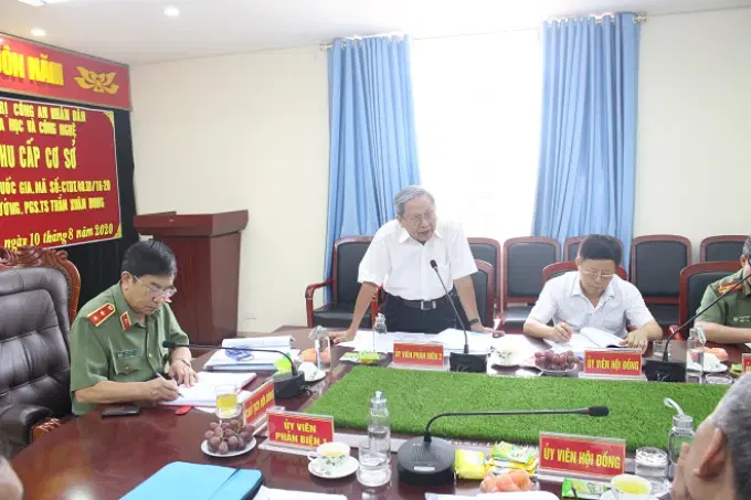 Thiếu tướng, PGS.TS Lê Văn Cương, nguyên Viện trưởng, Viện Chiến lược và Khoa học Công an, Ủy viên phản biện 2 phát biểu tại buổi nghiệm thu