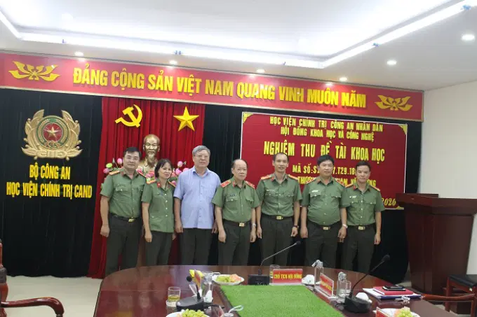 Chiều ngày 5/8/2020, Học viện Chính trị Công an nhân dân tổ chức nghiệm thu Đề tài khoa học cấp cơ sở: “Công tác đảm bảo chất lượng đào tạo, bồi dưỡng lý luận chính trị tại Học viện Chính trị Công an nhân dân - Thực trạng và một số giải pháp nâng cao hiệu quả”, mã số: SX.2017.T29.180 do Thượng tá, TS Phạm Văn Hưng, làm chủ nhiệm. Đồng chí Trung tướng, PGS. TS Trần Vi Dân, Giám đốc Học viện, Chủ tịch Hội đồng Khoa học và Đào tạo là Chủ tịch Hội đồng nghiệm thu. Tham gia buổi nghiệm thu là các thành viên trong Hội đồng nghiệm thu và đại diện lãnh đạo, giảng viên các khoa, phòng, bộ môn thuộc Học viện.
