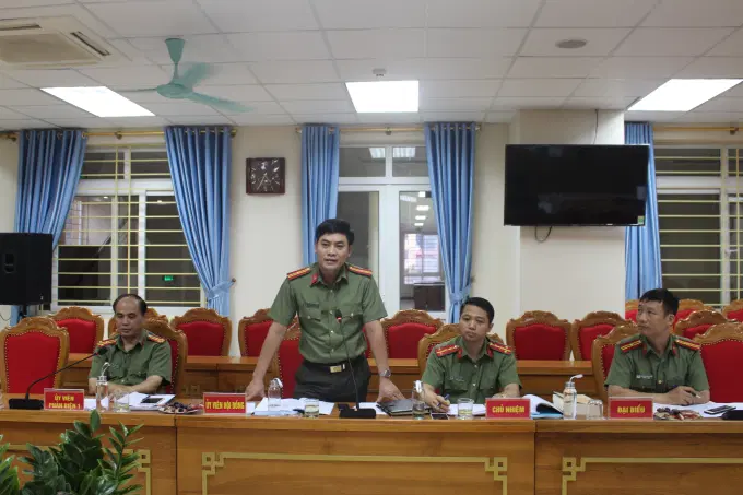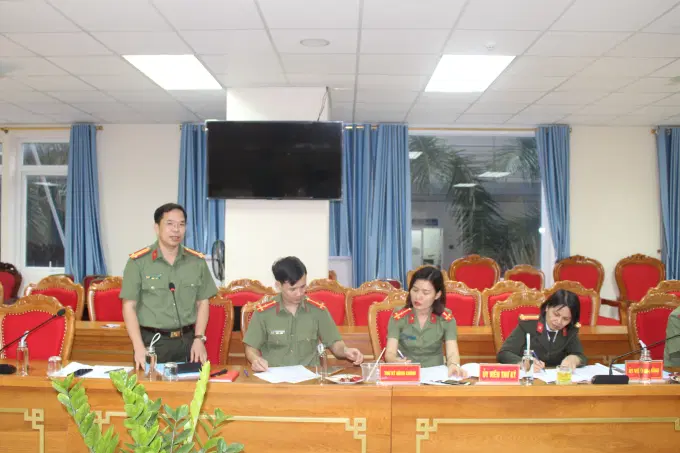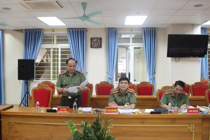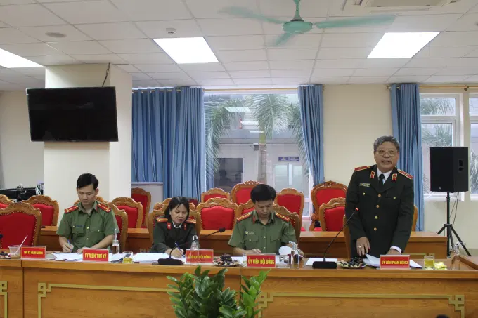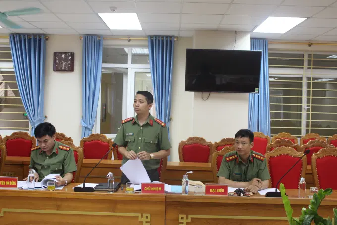 Đồng chí Thượng tá, TS Nguyễn Yến Thanh, Viện trưởng Viện Nghiên cứu lý luận chính trị Công an nhân dân, Ủy viên Hội đồng, phát biểu tại buổi nghiệm thu