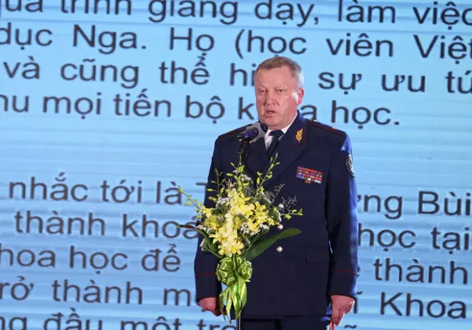 Tham tán Công sứ Liên bang Nga tại Việt Nam Vadim Bublikov khẳng định, trước những diễn biến phức tạp của tình hình an ninh toàn cầu thời gian gần đây, quan hệ hợp tác chặt chẽ mà ông chứng kiến giữa Bộ Công an Việt Nam và khối cơ quan thực thi pháp luật Liên bang Nga rõ ràng là một hình mẫu đáng trân trọng; trong đó công tác đào tạo cán bộ có trình độ chuyên môn cao luôn là yếu tố nền tảng của quan hệ Nga-Việt.