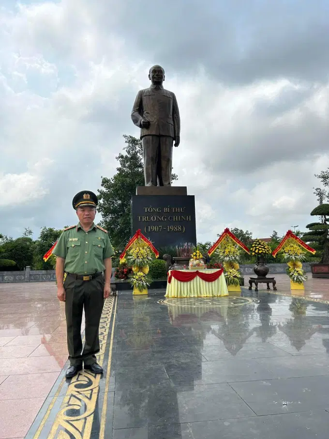 Đồng chí Trung tướng, PGS, TS Phan Xuân Tuy, Bí thư Đảng ủy, Giám đốc Học viện Chính trị Công an nhân dân tham gia Đoàn đại biểu dâng hương Tổng Bí thư Trường Trinh trước buổi tổ chức hội thảo