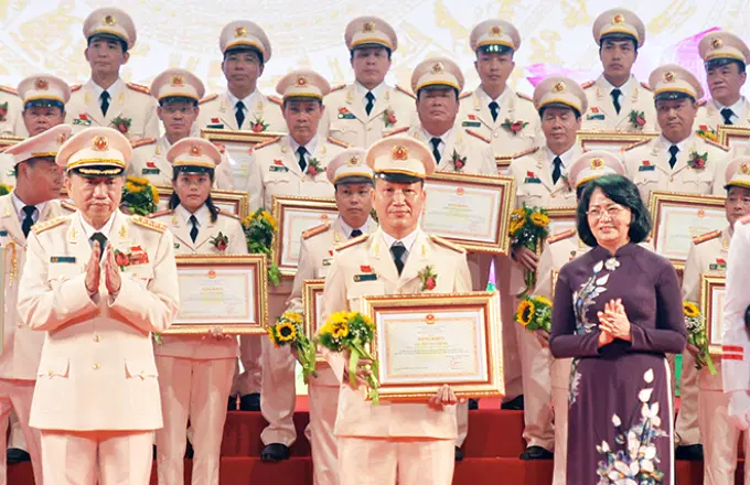 Phó Chủ tịch nước Đặng Thị Ngọc Thịnh, Bộ trưởng Bộ Công an Tô Lâm tặng Bằng khen của Bộ Công an cho các điển hình tiên tiến