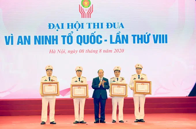 Tại đây, thay mặt lãnh đạo Đảng, Nhà nước, Thủ tướng Nguyễn Xuân Phúc đã trao tặng danh hiệu “Anh hùng lực lượng vũ trang nhân dân” cho 8 tập thể và 2 cá nhân và danh hiệu “Chiến sĩ thi đua toàn quốc” cho 6 cá nhân có thành tích xuất sắc. Đồng thời, 75 điển hình tiên tiến tiêu biểu thuộc lực lượng CAND và 15 điển hình tiên tiến tiêu biểu trong quần chúng, đại diện cho 207 tập thể, cá nhân có thành tích xuất sắc trong phong trào thi đua “Vì an ninh Tổ quốc” giai đoạn 2015-2020 đã được tuyên dương và nhận Bằng khen của Bộ Công an…